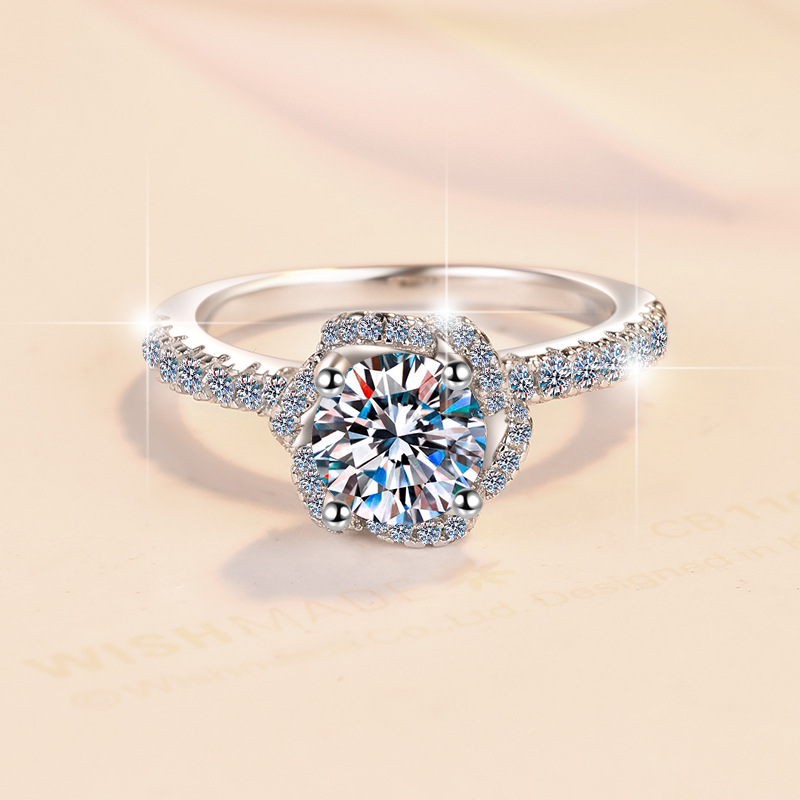 Rose Bud Moissanite Ring – 1CT 925 Silver Floral Jewelry